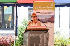 v.l.n.n.r Vorstand der AWO Region Hannover e.V. Dirk von der Osten, Ministerin für Soziales, Gesundheit und Gleichstellung Daniela Behrens, Geschäftsführer Pflegeteam Sehnde GmbH Sven Grabbe, Region Hannover Dezernentin für Soziale Infrastruktur Dr. Andrea Hanke, Präsidentin AWO Region Hannover e.V. Dr. Silke Lesemann, Bürgermeister Olaf Kruse, Bundestagsabgeordneter Dr. Matthias Miersch.